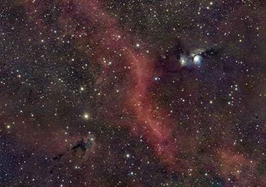 Backyard astro: Barnard’s Loop and the reflection nebula Messier 78 (M78, NGC 2068), about 1,350 lightyears away, and bottom left is LDN1622, the “Boogeyman Nebula” about 500 lightyears away, 49 x 300-sec subs, ZWO ASI071MC color camera (0°C, gain 0), William Optics Redcat51