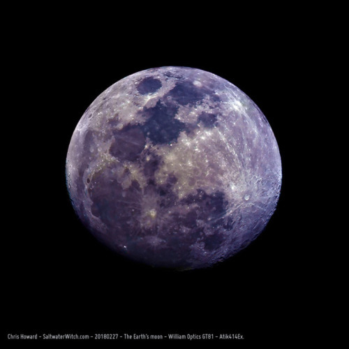 Our moon is looking especially beautiful tonight, even if it’s making it difficult to do some deep space imaging. This is a single 0.001 sec. shot with the William Optics GT81 refractor and Atik 414EX CCD camera. http://SaltwaterWitch.com/astronomy