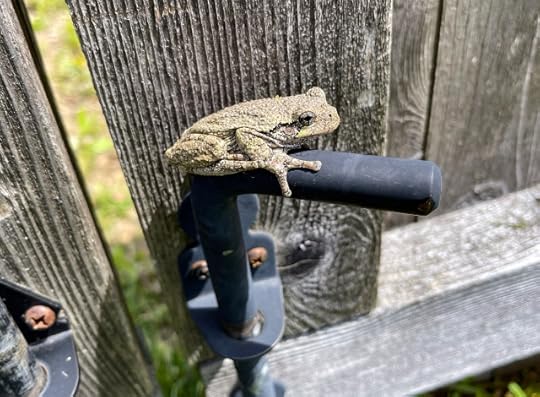 This wonderful dude is hanging out at the back gate–he just hung on while I opened and then closed the gate. I believe this is a Cope’s Gray Treefrog (Hyla chrysoscelis) or Eastern Gray Treefrog (Hyla versicolor). These guys really contribute heavily to that New England spring evening background noise.
