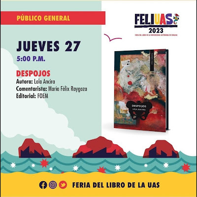 Mañana, Tania Tinajero y yo presentamos _Despojos_ a las 5:00 p.m.