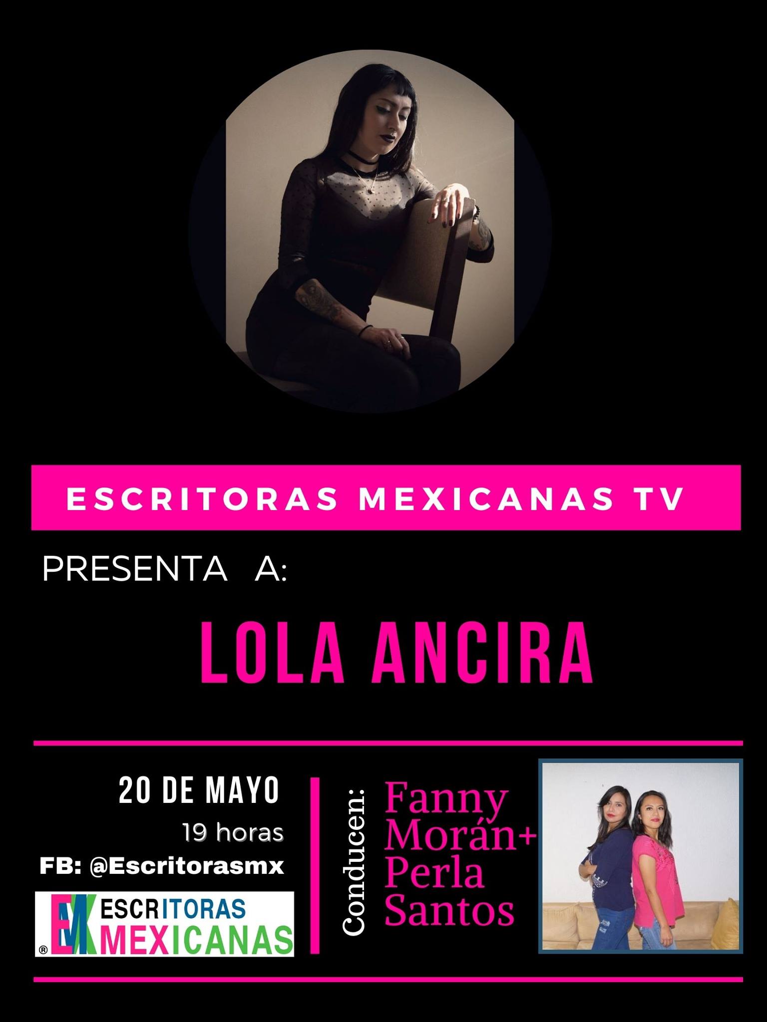 Hace unos días tuve el placer de ser la invitada en #EscritorasMxTv, donde charlé con Fanny Morán y Perla Santos sobre mi obra y otros temas y leí las primeras páginas de dos cuentos de mi nuevo libro, Tristes sombras. Pueden ver la grabación de la charla en la página de Facebook de Escritoras Mx.