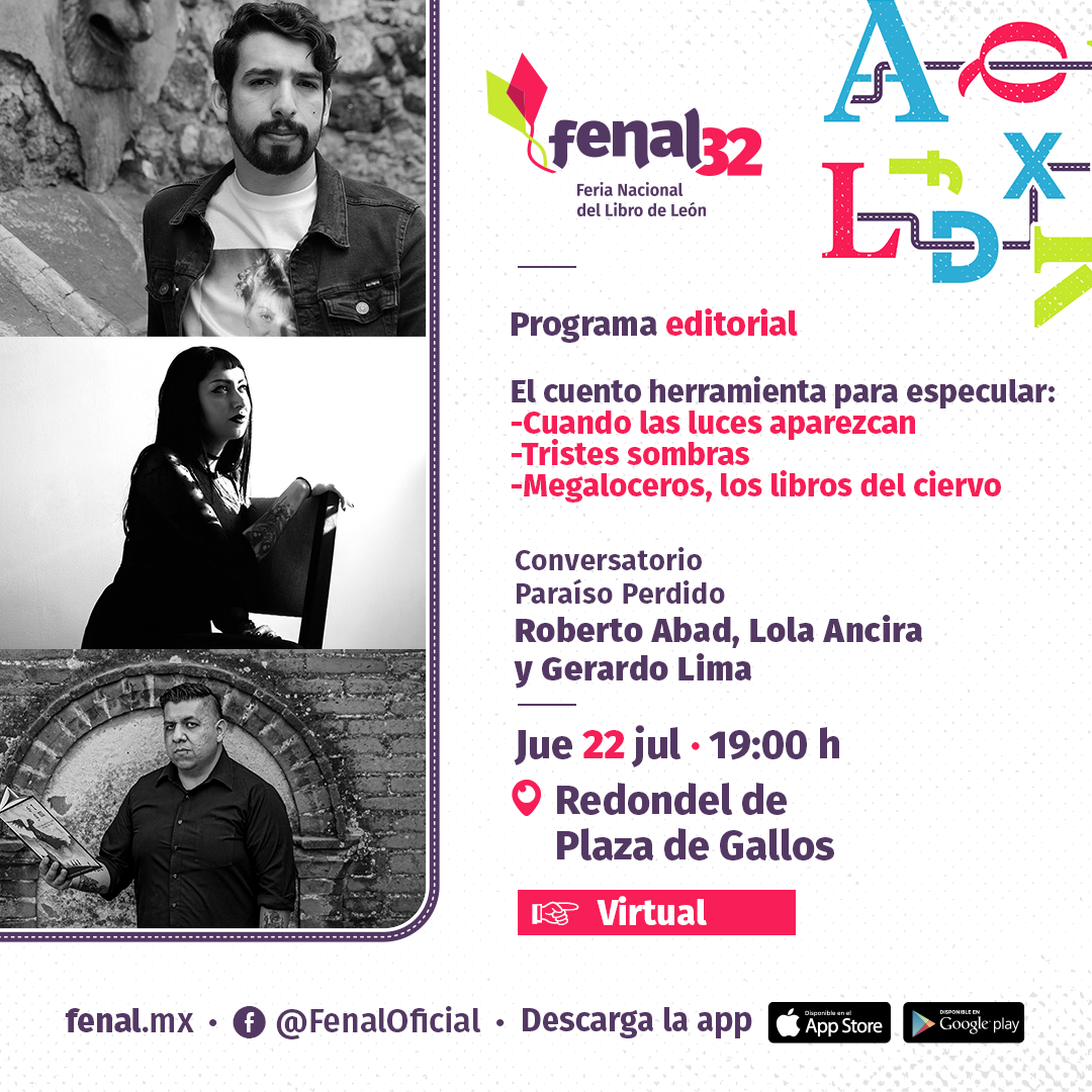 Acompáñanos durante el conversatorio 'El cuento herramiento para especular', que contará con la presencia de Roberto Adad, Lola Ancira y Gerardo Lima.