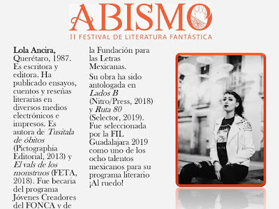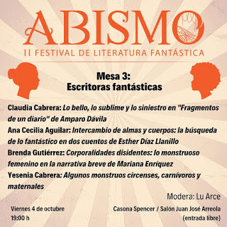 Este jueves inicia Abismo, II Festival de Literatura Fantástica en Cuernavaca, Morelos. Exposiciones, lecturas de cuentos fantásticos, ciclos de cine de terror, presentaciones de libros, charlas magistrales y numerosas mesas enfocadas a la literatura del género forman parte del increíble programa del festival, que este año rinde homenaje a la gran Amparo Dávila.