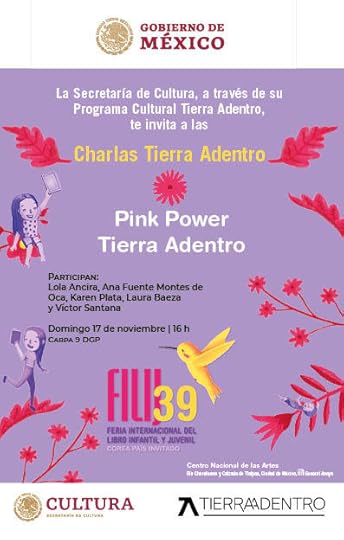 El domingo 17 de noviembre, también participaré en la mesa Pink Power, charlando sobre la literatura actual escrita por mujeres junto con Ana Fuente, Karen Plata y Laura Baeza.