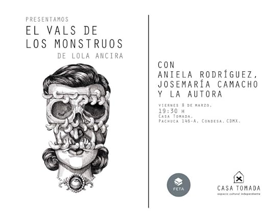 Los escritores Aniela Rodríguez y Josemaría Camacho me acompañarán en la presentación de mi libro El vals de los monstruos el próximo viernes 8 de marzo en Casa Tomada, centro cultural ubicado en la calle Pachuca 146-A, en la colonia Condesa (CDMX). La cita es a las 19:30 horas, ¡ahí nos vemos!