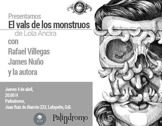 Mañana, jueves 4 de abril, tendré el enorme gusto de presentar El vals de los monstruos en Palíndromo (Juan Ruiz de Alarcón #233, colonia Lafayette, Guadalajara). En la mesa me acompañarán mis queridos Rafael Villegas y James Nuño. La cita es a las 20:00 horas.