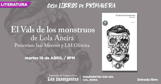 El próximo martes 16 de abril tendré el honor de estar acompañada por Isaí Moreno y L. M. Oliveira para charlar sobre El vals de los monstruos en el ciclo Libros por primavera de la pulquería Los Insurgentes (Insurgentes sur 226, colonia Roma, CDMX).
