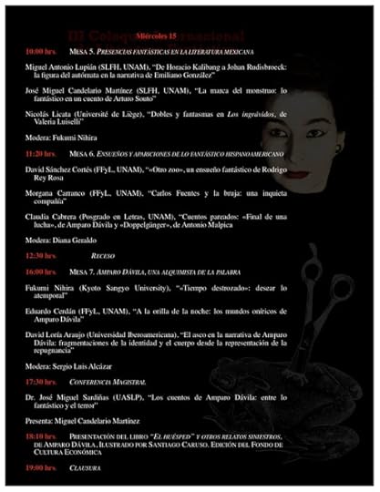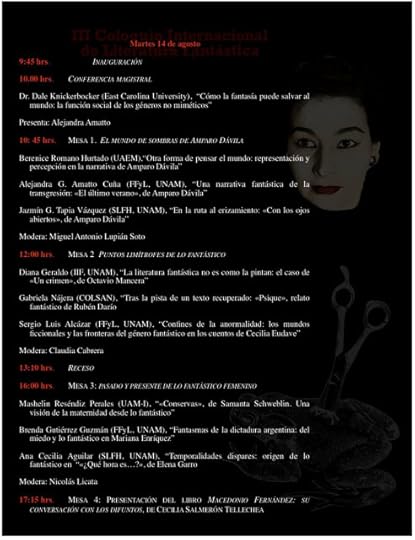 Este 14 de agosto inicia el III Coloquio Internacional de Literatura Fantástica (en homenaje a la escritora Amparo Dávila) que organiza el Seminario de Literatura Fantástica Hispanoamericana de la Facultad de Filosofía y Letras de la UNAM. Los eventos se realizarán en el Salón de Actos de la misma facultad.