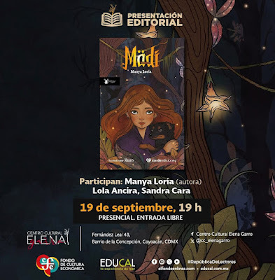Corda Ediciones está en Centro Cultural Elena Garro. · Acompáñanos en la presentación de Mädi, la nueva novela de nuestra colección #PalabrasAlViento. Estarán presentes la autora @manya.loria, @lola_lien y nuestra directora general @sandra.cara ———————————————Emilia tiene 13 (casi 14…) años y está maldita. Recorre junto a ella los senderos de Mädi y descubre la verdad que se oculta detrás de las historias de su familia mientras le demuestra a los adultos que: EL AMOR NO DUELE, NI MATA.