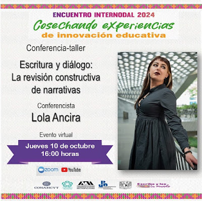 ¡Hoy a las 4 p.m.! Estoy muy agradecida con mi querida Luz Lazos por la invitación a participar en el Encuentro Internodal 2024. Cosechando experiencias de innovación educativa, para impartir la conferencia-taller "Escritura y diálogo: La revisión constructiva de narrativas" por YouTube.
