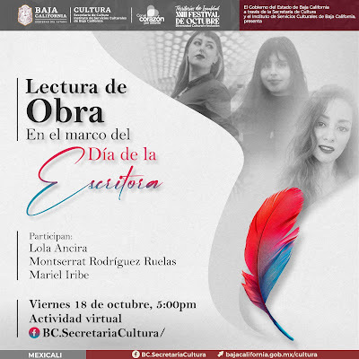 Hoy, a las 6 p.m., estaremos leyendo (en un evento virtual) Mariel Iribe Zenil, Montserrat Rodríguez Ruelas y yo en el marco del #DíaDeLaEscritora, mil gracias a nuestra querida Elma Correa por la invitación.