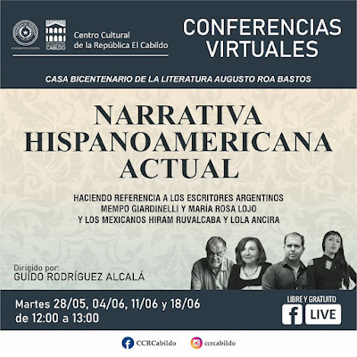 La Casa Bicentenario de la Literatura, “Augusto Roa Bastos”, dependiente del Centro Cultural de la Republica El Cabildo, realizará una serie de conferencias virtuales denominada "Narrativa Hispanoamericana actual", a cargo del escritor y asesor del CCR Cabildo, Guido Rodríguez Alcalá.
