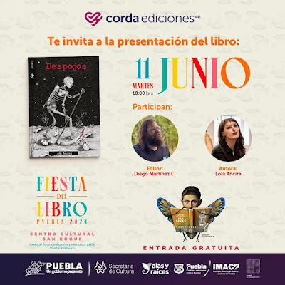 ¡Nos vemos hoy en la Fiesta del Libro Puebla! Diego Martinez Cara y yo presentaremos la nueva edición de _Despojos_