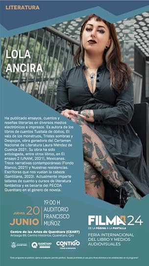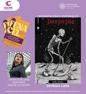Instituto de Arte y Cultura de CelayaprtoSdnsoegc4 h6lmch979l1thc7gc0096m5062g41ci187mfh5att68177 · Lola Ancira (Querétaro, 1987) ha publicado ensayos, cuentos y reseñas literarias en diversos medios electrónicos e impresos. Es autora de los libros de cuentos Tusitala de óbitos, El vals de los monstruos, Tristes sombras y Despojos, obra ganadora del Certamen Nacional de Literatura Laura Méndez de Cuenca 2021. Fue becaria de la Fundación para las Letras Mexicanas y del Fonca. Su obra ha sido antologada, entre otros libros, en El ensayo 2 (UNAM, 2021), Mexicanas. Trece narrativas contemporáneas (Fondo Blanco, 2021) y Nuestras resistencias. Escritoras que nos vuelan la cabeza (Santillana, 2023). Actualmente imparte talleres de cuento y cursos de literatura fantástica y es becaria del PECDA Querétaro en el género de novela.