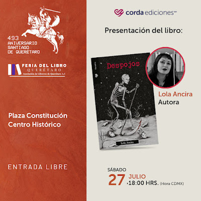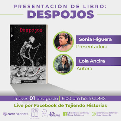 Les invitamos el jueves 01 de agosto a las 6:00 pm hora CDMX, para la presentación del libro "Despojos" de Corda Ediciones en conjunto con Librería Sra. Dalloway