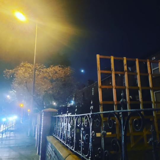 After a hard day of work, I decided to go for a short walk. It was a crisp, cold evening and there was a sliver of moon low in the sky. Absolutely gorgeous. After my walk, I picked up takeout from a restaurant around the corner.