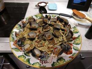 So now I’m finding out that there are plenty of clam-lovers and clam-diggers out there. To my horror, once a friend of ours found out my husband had become conversant in all things clam, he promptly invited us over for dinner. He’d make Clams Casino Fettucine.