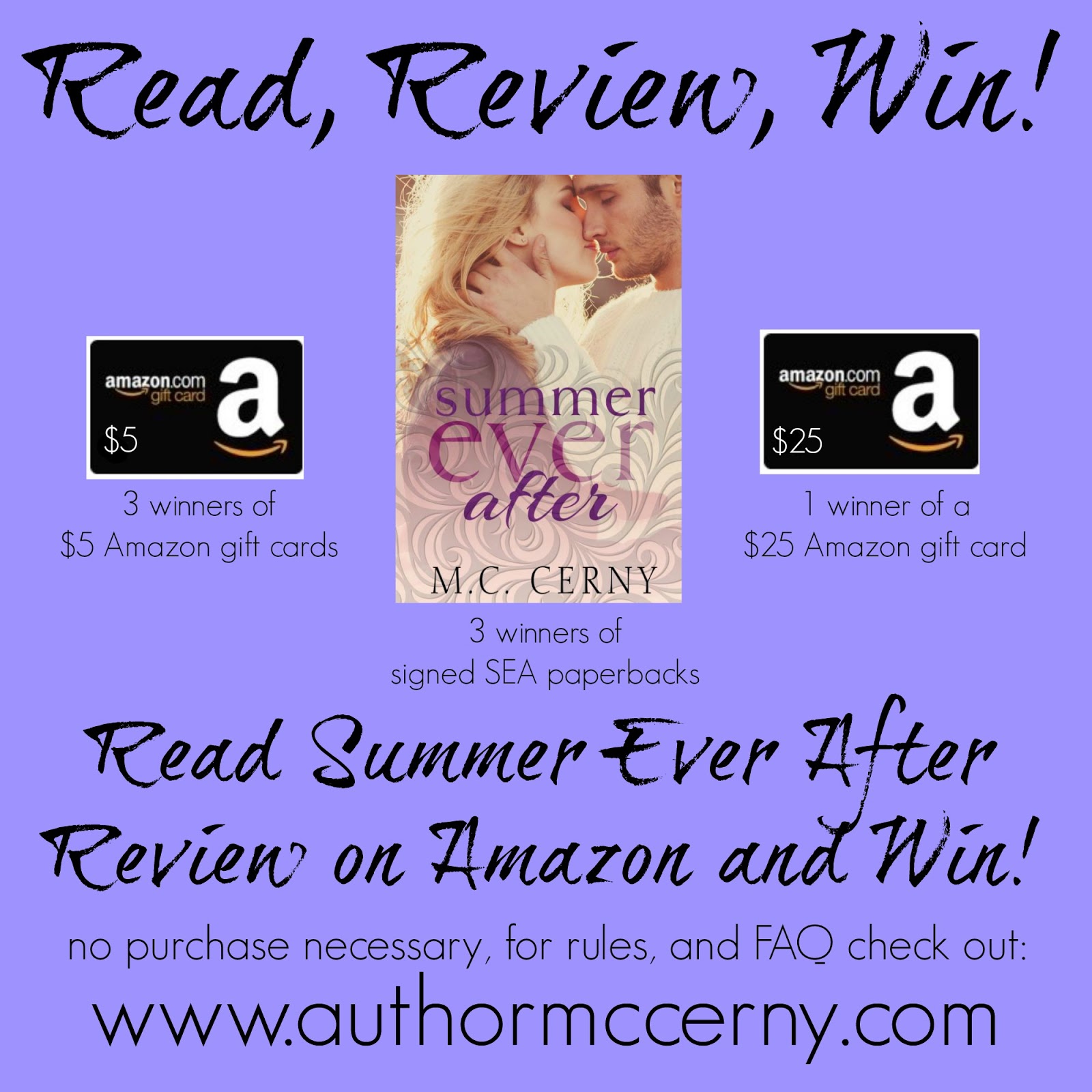 Prizes include:one of 3 Amazon gift cards for $5one of 3 signed paperback copies of SEAone Amazon gift card for $25