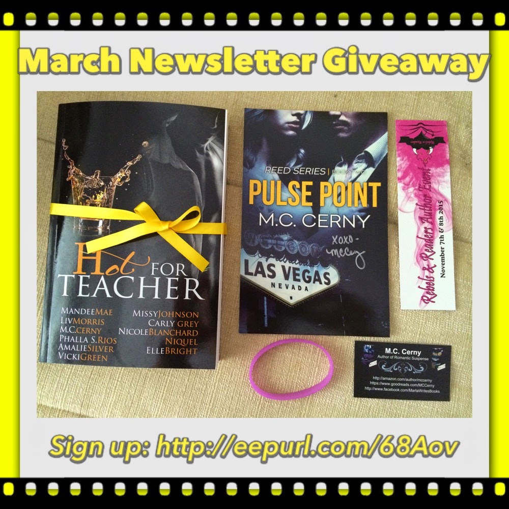 NEWSLETTER LINK One lucky winner will receive a signed paperback copy of the Hot For Teacher Anthology, which includes my novella, Deviation. A postcard of Pulse Point, my business card, a glow in the dark Flashpoint wristband and a bookmark from the Rebels & Readers Author Event I am attending in November 2015. The is open internationally and the winner will be selected from my newsletter subscribers. XOXO What else is happening?? Oh I'm going to be releasing The Naughty List on 3/18/15 so get ready to see our favorite matchmaker back at it with her daughter Priscilla and the competition! But before that I'll be participating in a Curvy Girl Author Appreciation event on facebook next week. March 13th and 14th join us for a two night event filled with shenanigans and curves. I've written a super sexy short exclusive to the event and another perk of signing up for my newsletter because the ENTIRE short will be featured in the March newsletter, just for you, but don't miss the event because lots of authors with have giveaways and fun. :-)