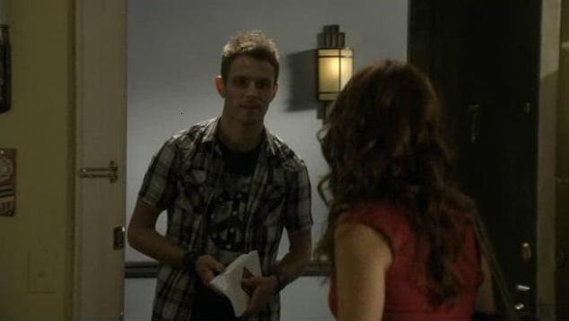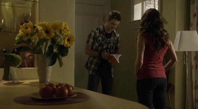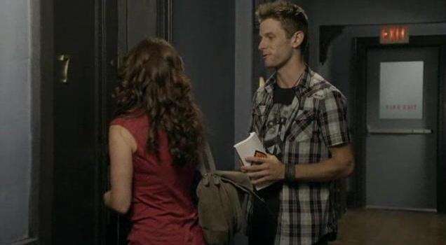 Here, we see the character of Kai Booker (played by Sebastian Piggot) waiting for Erica (Erin Karpluk) to arrive. He passes the time in the best manner possible; by perusing favourite passages from his well-worn copy of Shelf Monkey...