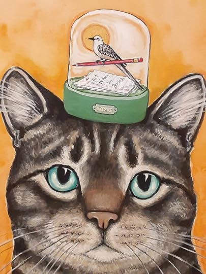 Here’s another painting in my Odditerrarium series titled “Teacher”. Like the others is is 10 x 8 inches and created using ink, gouache and collage on board. It will join the rest of the series for my upcoming exhibit at Burnt Bridge Cellars via the Caplan Art Designs Gallery.