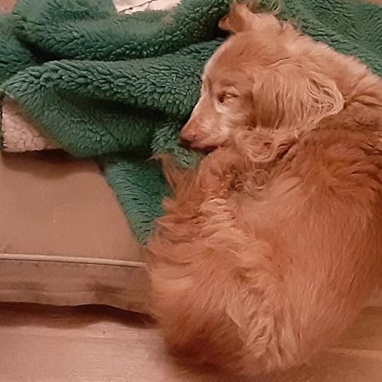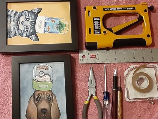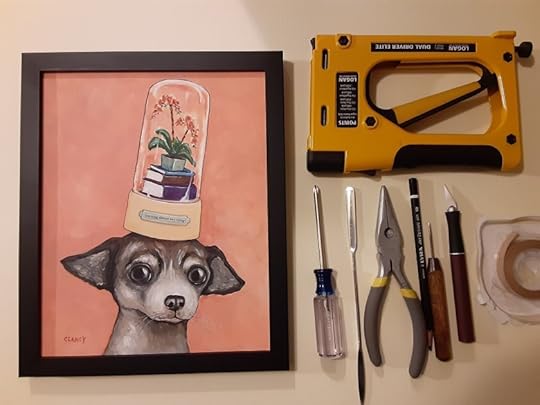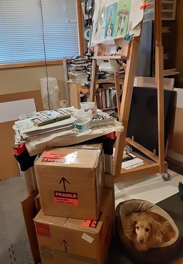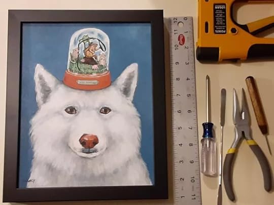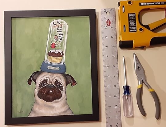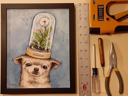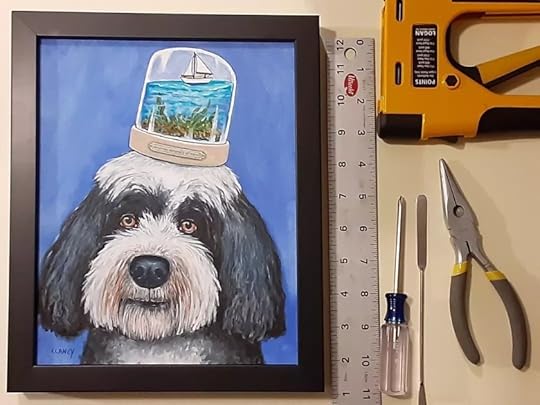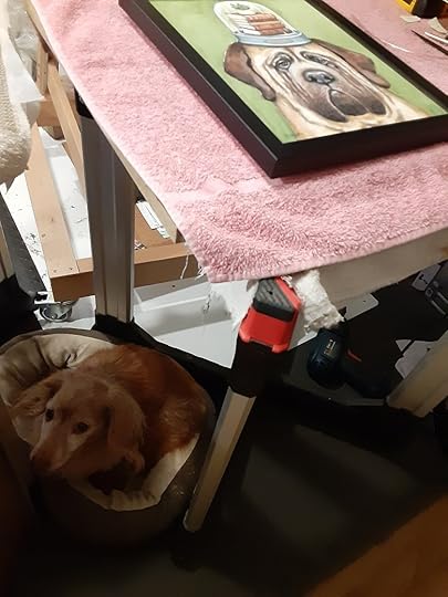My dachshund has a bed near my work area. (See the photo below). As I finished framing the last painting I imagined…