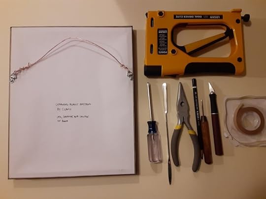 I’ve been framing artwork almost every day like I mentioned last post in an adjustable rhythm of spray varnish two and frame two. Slowly but steadily I’m getting all 20 framed.
