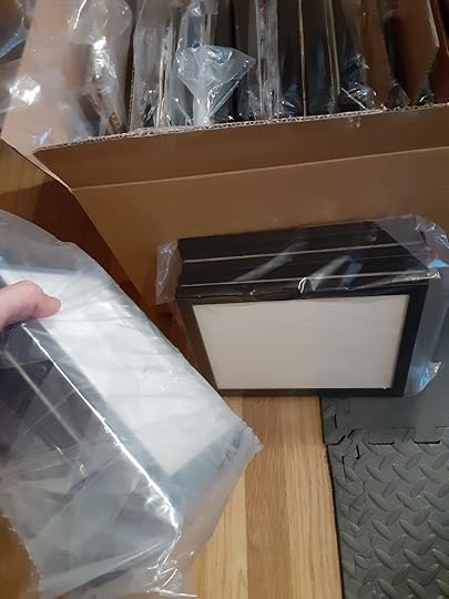 At the end of the week I got the the rest of the frames I need from the Aurora Gallery! The new frames are outside the box and the box is full of artwork that’s already been framed. So if I keep this work rhythm going I will have all of the framing finished a week early before delivery. I like giving myself some time to relax before delivery day.