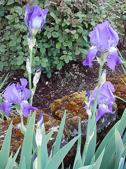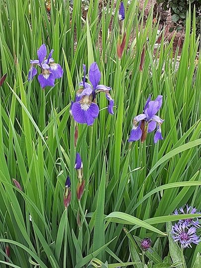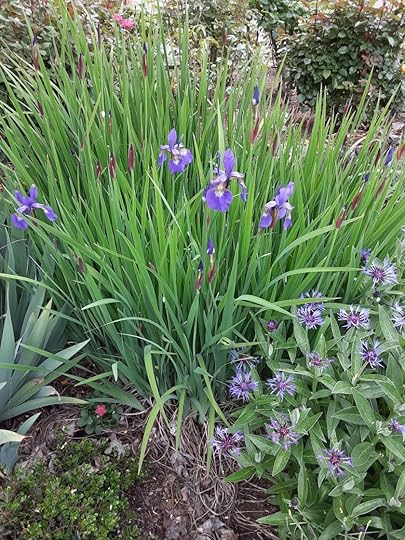 Here’s the visit to the yard my supervisor dachshund and I talked about earlier. The Japanese Iris’s are blooming now and I really love the odd shapes of them! The other flowers in my wife’s garden are pretty too.