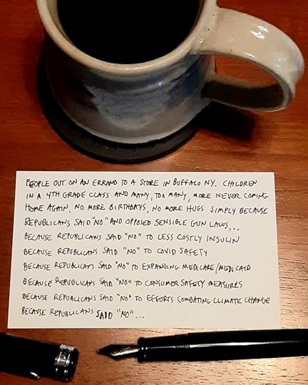 This week the massacre in Uvalde Texas happened. I’m so very tired of unnecessary deaths. I’m bone weary of gun violence. Generally I keep my comments about current events off of this blog but I’m very upset about all of the unnecessary deaths due to one word said by one political party in the U.S. One morning I grabbed a scrap of paper and wrote…