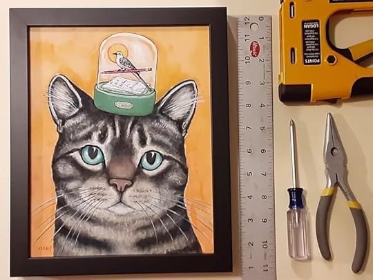 Anyway, all of the frames have been filled with artwork now. Here’s some photos of just-framed works still on my work bench.