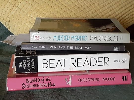 My reading stack this week: I finished Christopher Moore’s “Island of the Sequined Love Nun” and P. M. Carlson’s “Murder Misread”. Both of those transported me to a better frame of mind.