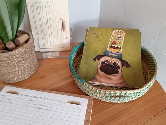 There’s another area in the winery with more of my artwork and a basket holding copies of my book “Odditerrarium: a fine art album and nonsense poem”. (Copies are also available via mail here.)