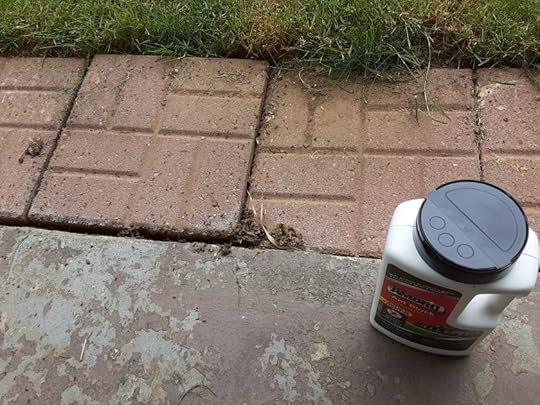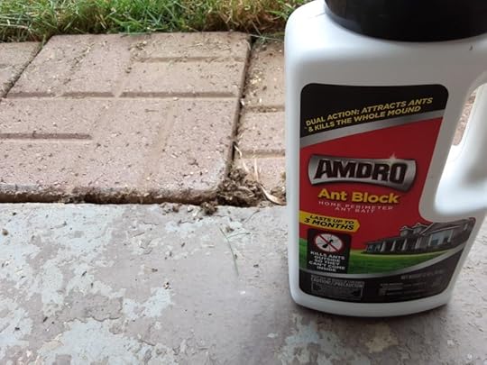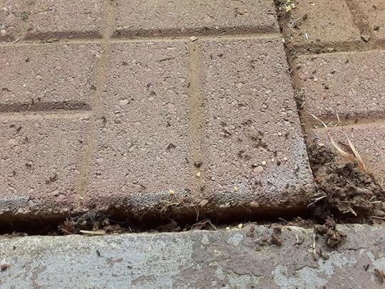 I lifted the bricks and put the ant bait directly on the fascinating ant farm-tunnel construction then covered the bait with the bricks again and swept away the dirt on the brick edges. Of course I had a good look at the way the ants collected and organized the dirt before I did my acts of destruction.