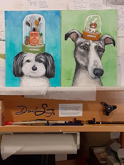 Quite on purpose not a lot else happened this week so I’ll catch you up on another art for a winery project. This happened over the last 6 months or so and was kept under wraps till the winery could open publicly. For Canal District Wines in Massachusetts I did a series of pet portraits and made them into art prints.