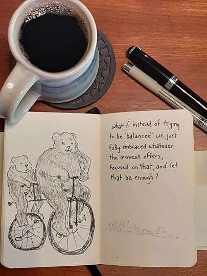 Now after Mom’s passing I keep thinking about creativity and mental health skills… what if making stuff is primarily a way of listening to yourself? Not something to be primarily viewed as a way to make money or even with an expectation to make “good art”. What if writing and drawing, along with reading and looking at art, are simply coping skills in times of stress? Something accessible to everyone. What if, as I shared last Friday in my A.M. Sketching email newsletter, art making is simply intelligence doing self-care and playing?