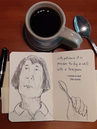 Now I’m thinking of sharing more of my sketchbook work in a step by step way over on A.M. Sketching and possibly here too. Somehow I want to emphasize the connection I see between mental health and marks on paper … but how do I want to do this? How can I do it that also helps me take care of myself by not adding to my already long project list? I’m reminded of this teaspoon page in my sketchbook.