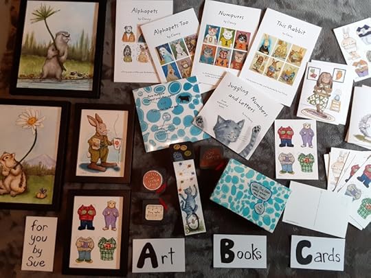 In August I’m having an exhibit at the Aurora Gallery. I’ve titled it: “For you by Sue the ABC’s: Art, Books. Cards”. All of this exhibit too was inspired by my life, my self-generated references and my imagination.