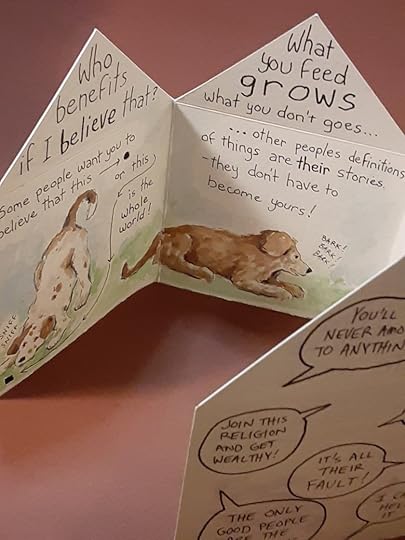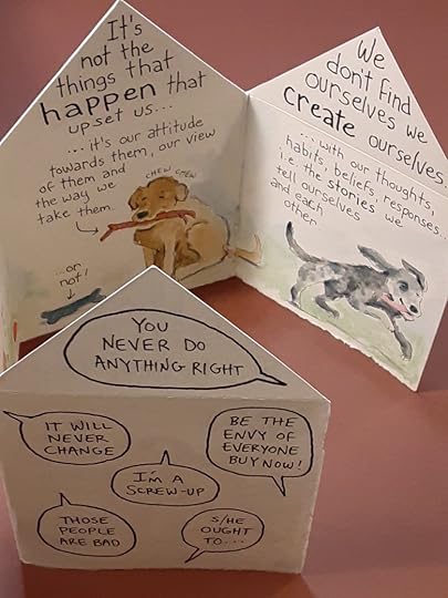 I wrote in my last post about my upcoming art exhibit at the Aurora Gallery. Here’s another video look at some of my artist books that will be in that upcoming exhibit. https://youtu.be/_VqH-Jw9wbg The featured book “Stories we could live inside…or not” relates to the mental health theme… here are some still photos but please see the video.