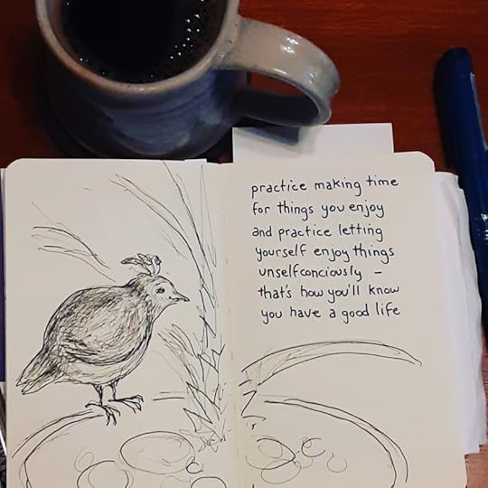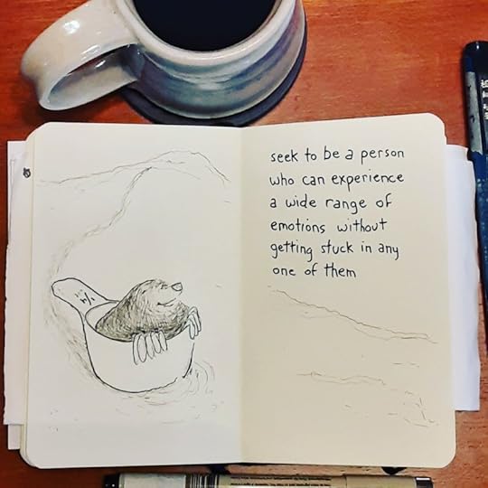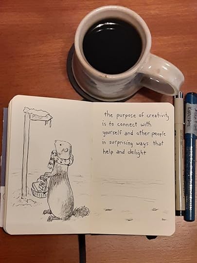 I find that having a wide range of books to read helps me stimulate and cultivate my own ability to pay attention where it nurtures my creativity the most. My sketchbook is where I practice noticing/tracking (accounting?) where I pay attention and how helpful it is or isn’t. It’s where I play with ideas and cook up my own “good wolf food”. It’s where I live and work with the questions. It’s where I “stick around and find out”.