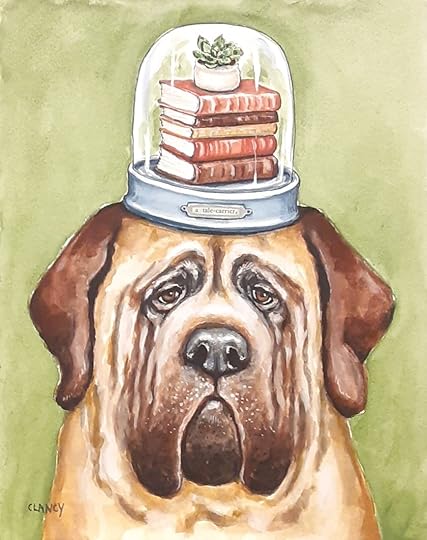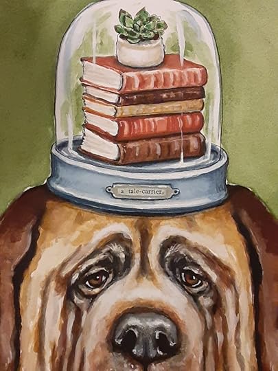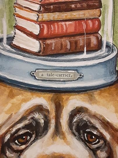 The new brush technique did help me get more fine details. Particularly around the dog’s eyes, nose and on the books. Here’s a closer look…