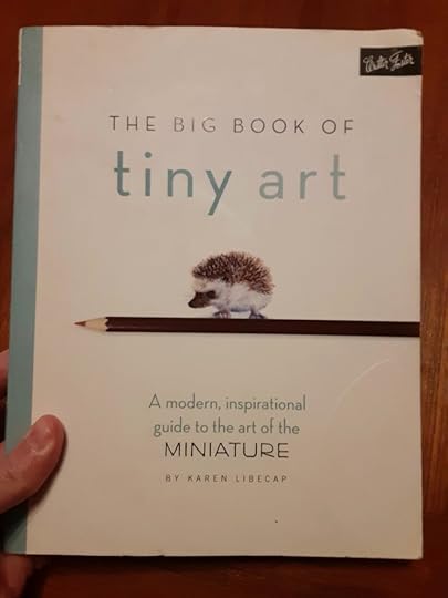 Also this week another printed book on the topic of miniature art came in the mail from one of my local bookstores. The Big Book Of Tiny Art by Karen Libecap is just plain fun to look at and read. It does have a good review of pencil techniques as well as use of color. The main attraction for me is the “watch-it-develop” sequences of photos that document ways to achieve tiny details. Oh, and the gallery of examples of finished miniature artworks is a treat. This book is encouraging and pleasing in tone – which will make it nice to have on my shelves. No Earth shattering art technique BFO (Blinding Flash of the Obvious) moments in this book like there was in reading Miniature Art by Joan Cornish Willies. But the friendly can-do spirit and lack of snooty-ness in the Tiny Art book by Libecap, I think, means more people- myself included- are more likely to keep trying this art form. Plus I just love it that these tiny art techniques are so applicable to what I do in my sketchbooks.