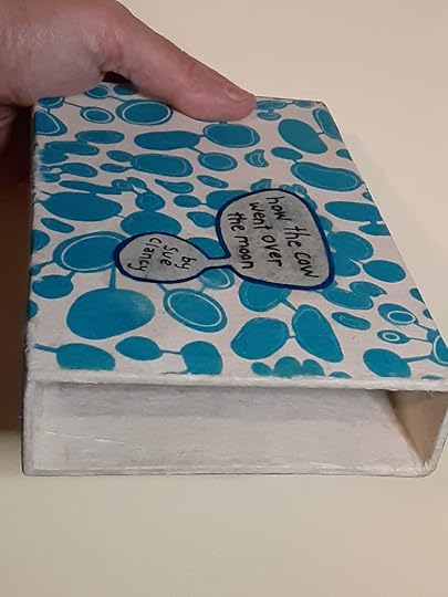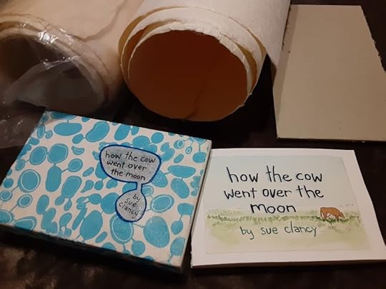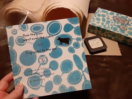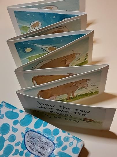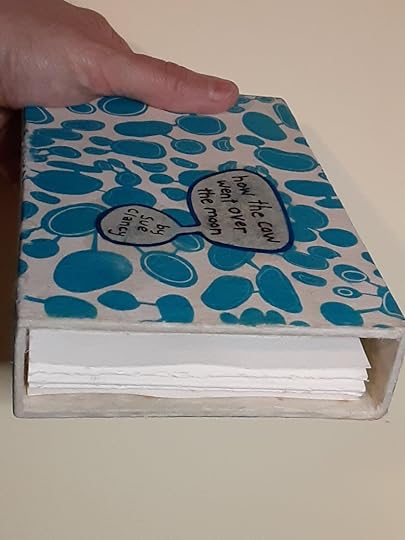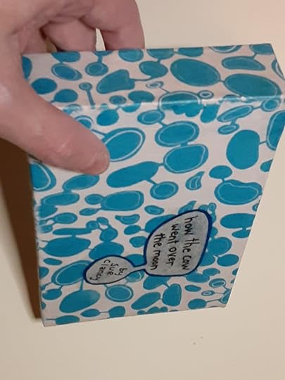 In my last post I shared my methods of making the original artist books “How The Cow Went Over The Moon” and “Tiny Notes”. The handmade original one-of-a-kind books are the basis for a printed version, newly released, titled “How The Cow Went Over The Moon and Tiny Note To The Sun” (https://www.blurb.com/b/11033023-how-the-cow-went-over-the-moon-and-tiny-notes-to)