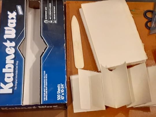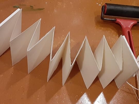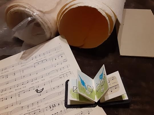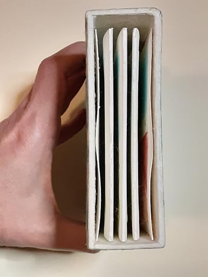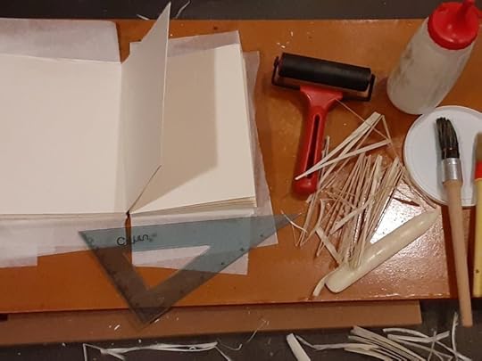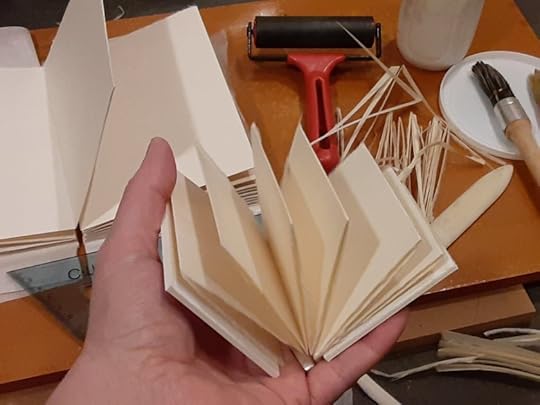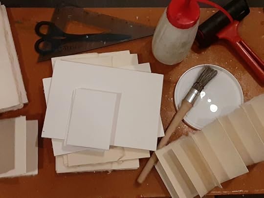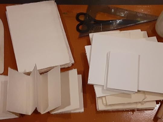This week I also cut, folded, trimmed and glued handmade paper into what I call “book blanks” concertina books that are ready for my content. I have some more plans for future artist books and this is part of getting ready for book content production.