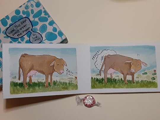 Also in the promotion of How the Cow… Bonnie showcased my work on her blog https://bonniereadsandwrites.wordpress.com/2022/03/06/self-published-spotlight-how-the-cow-went-over-the-moon-and-tiny-notes-to-the-sun-by-sue-clancy/ I just love how the online creative community supports and encourages each other! I appreciate all the help I get when it comes to letting people know my work exists. (If you’re a writer please check out Bonnie’s blog.)