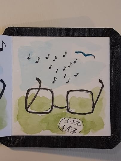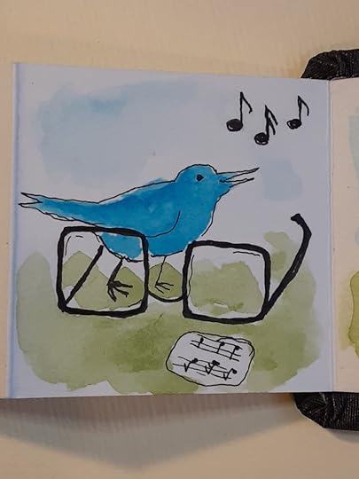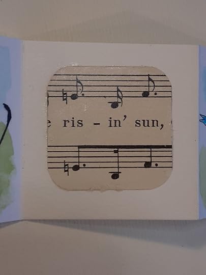 I finished painting the content and the cover art. Then I cut out the cover art and glued it onto the outside of the 2 inch square concertina book.