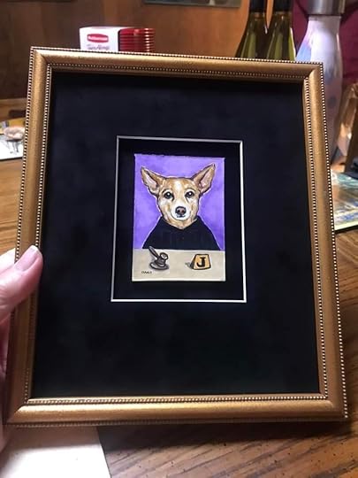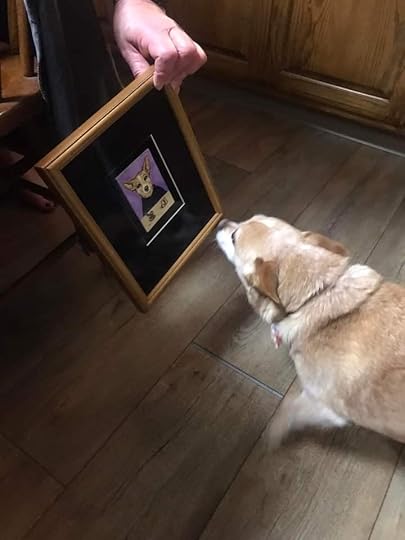 And someone else sent me photos of their dog approving the dog portrait I painted and the way the Aurora Gallery framed the portrait! So glad their dog approved!!