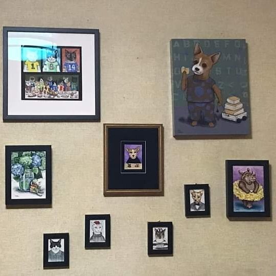 Here below is the framed portrait on the dog’s “Clancy art” wall!! Isn’t that sweet?! A whole wall!! Wow!! This makes my artist heart so happy!!