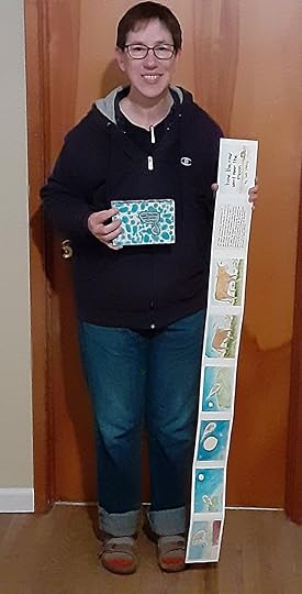 This past week has been filled with gluing the cow artwork pages onto a piece of paper cut 4.25 inches x 4 feet long and folding it so that it zigzags into panels 4.25 x 6.25 inches in size. Plus the week was spent making a slipcase for my book which can be called a leporello, a concertina or an accordion format. Everything was made from scratch: raw archival book binders board, white flat paper and glue. When the story pages are folded they’re almost 1 inch thick so the slipcase accounts for that. Below are photos of the slipcase and the concertina book.