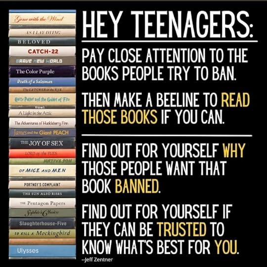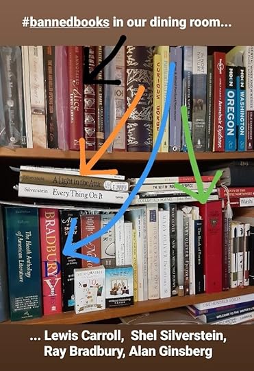 My spouse mentioned the current news about book banning and that one of the titles banned is “A Light in the Attic” by Shel Silverstein. We have that book in our dining room poetry collection. It’s a favorite! Hearing that news led to both of us looking up what other books we have on our shelves that are banned. It was a fun scavenger hunt of sorts! Turns out we have a large number of banned titles throughout our book collection. Two shelves in our dining room alone yield 4 books/authors who have been banned… even as recently as 2022.